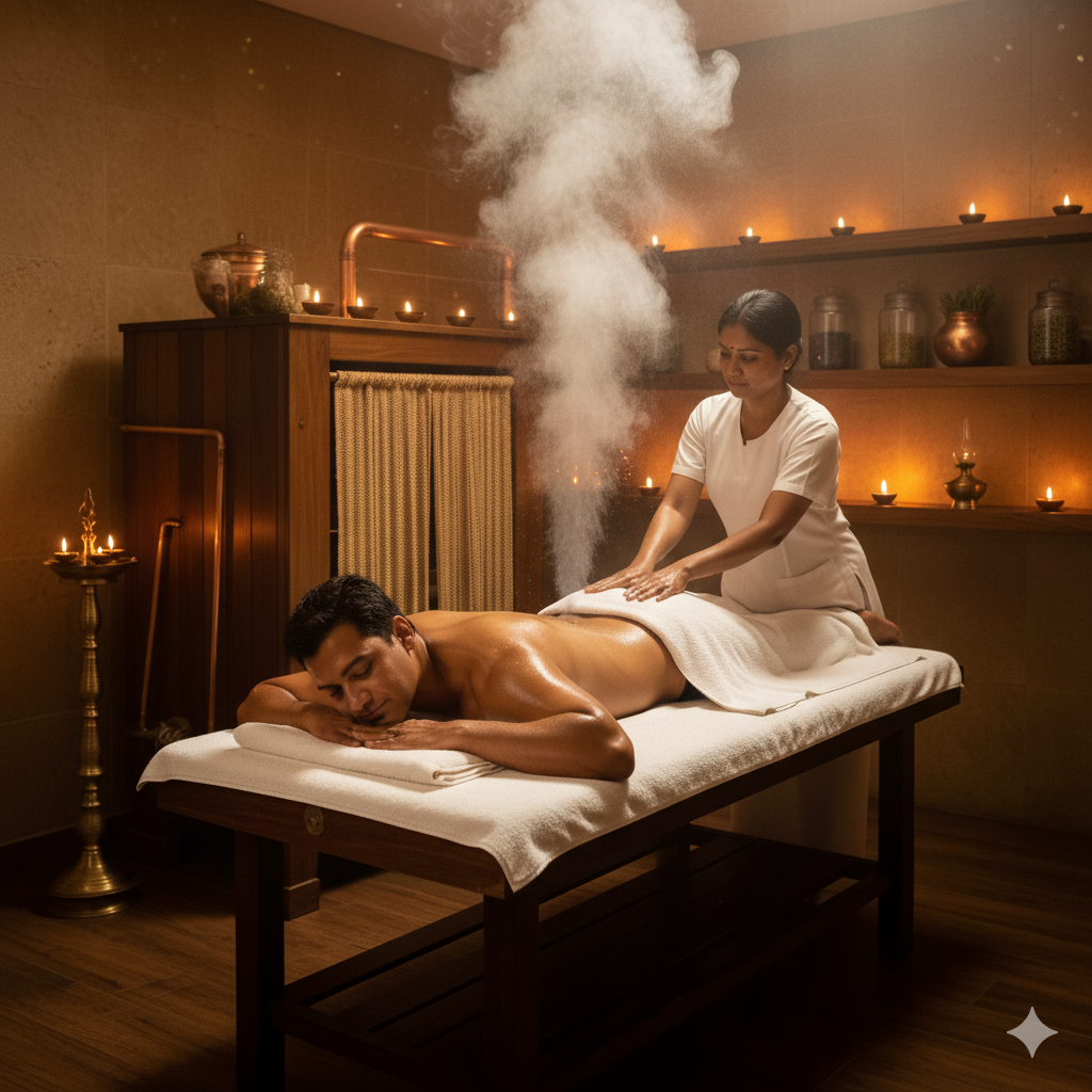 Full body steam therapy with therapeutic oil massage