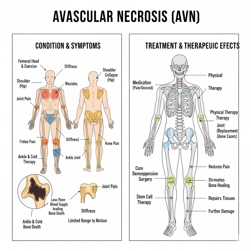 Specialized treatment for avascular necrosis, a condition where bone tissue dies due to lack of blood supply. Our advanced neurotherapy techniques help restore circulation and promote bone healing.