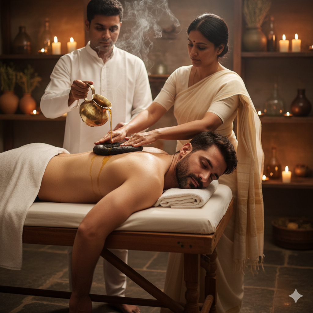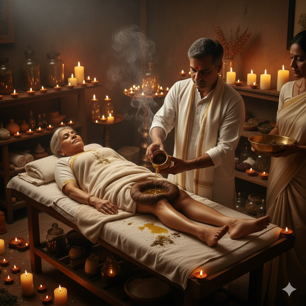 Specialized Ayurvedic treatment for lower back pain using medicated oils in a dough boundary. Highly effective for spine-related conditions.