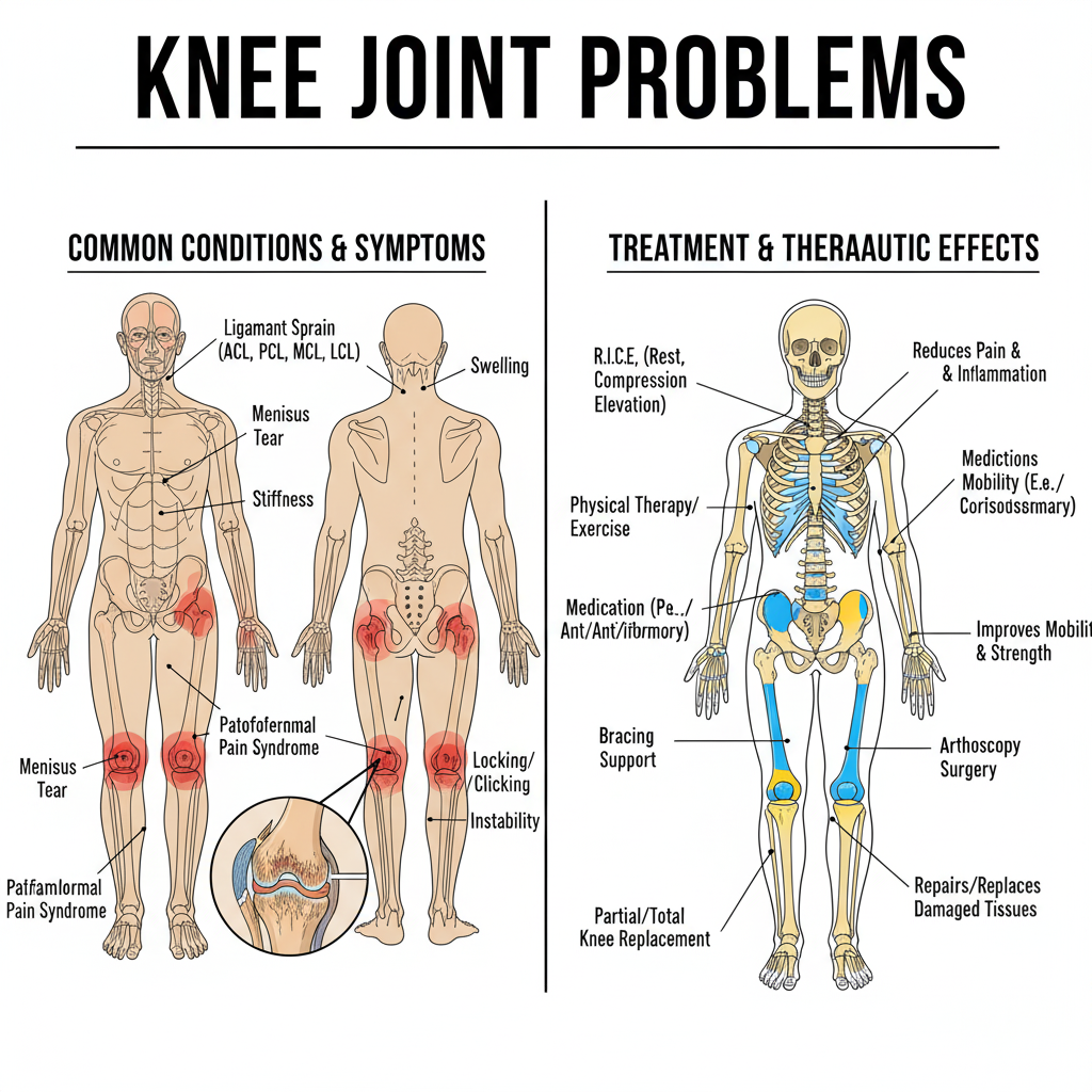 Expert care for knee joint conditions including arthritis, ligament injuries, cartilage damage, and mobility issues with focus on restoring function and reducing pain.